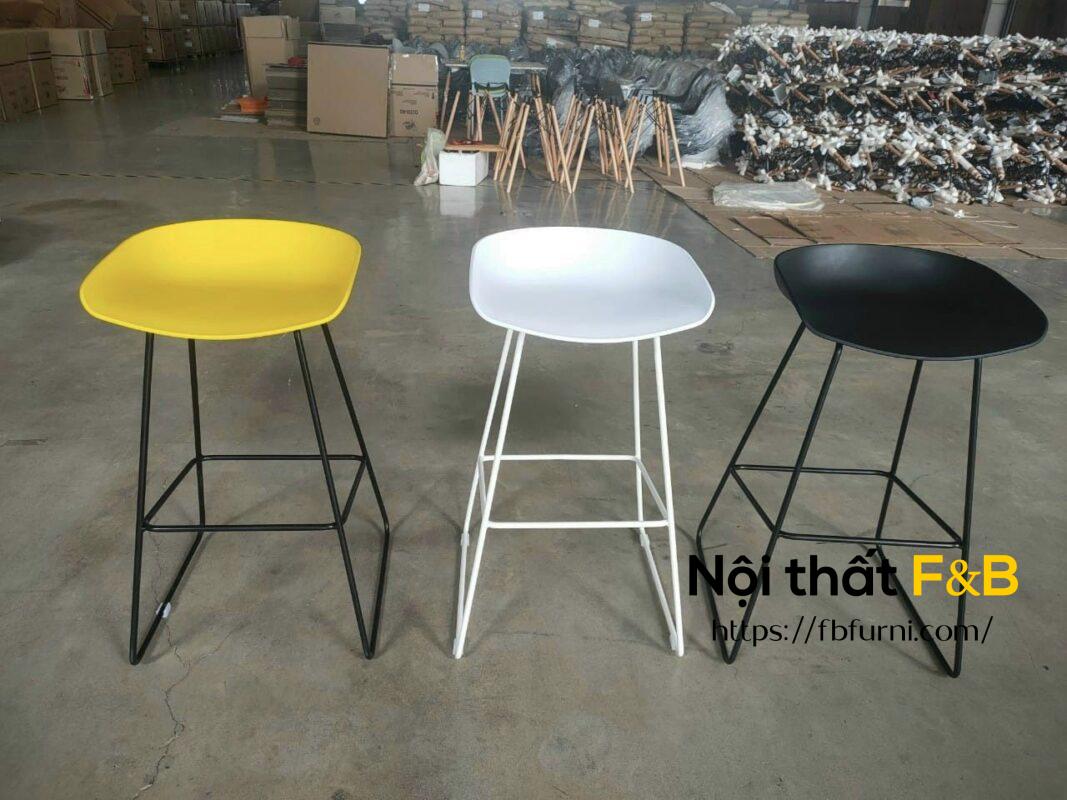 Ghế bar mặt nhựa chân sắt rất được ưa chuộng trong không gian cà phê, nhà hàng