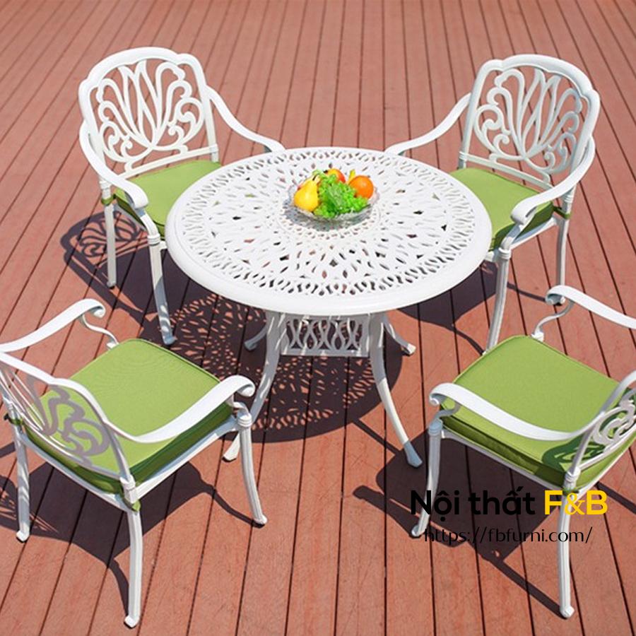 Ghế nhôm được sử dụng nhiều trong không gian sân vườn, sân thượng ngoài trời. Bàn ghế bằng nhôm có độ bền rất cao, chống chịu mọi thời tiết nắng mưa, có trọng lượng tương đối nhẹ và giá thành cũng khá cao.