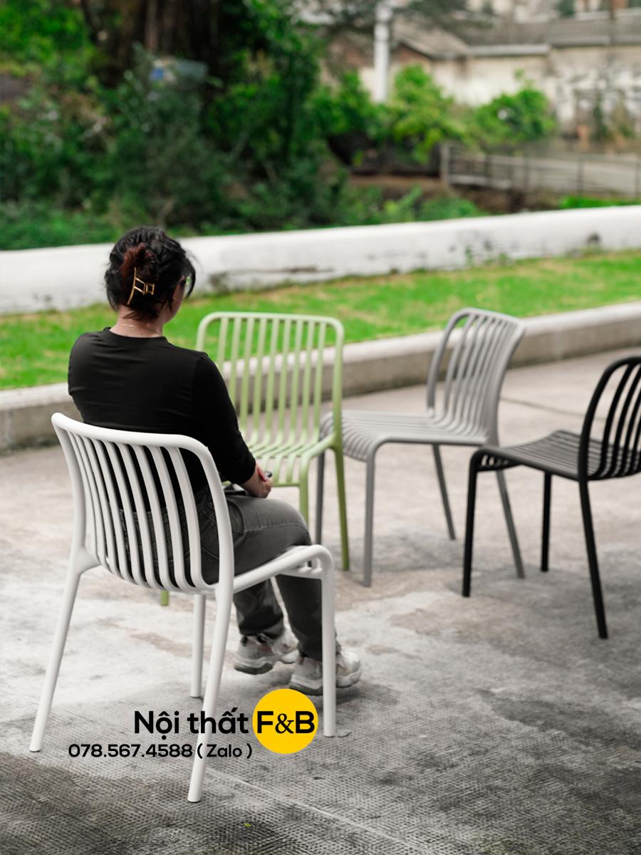 Ghế nhựa, đặc biệt là các mẫu ghế nhựa đúc hiện nay có rất nhiều kiểu dáng, màu sắc và có khả năng xếp chồng cùng trọng lượng nhẹ, rất tiện dung cho cả không gian nội thất và ngoại thất.
