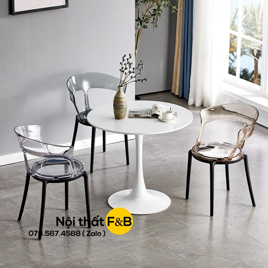 Một bộ bàn ghế ấn tượng mà bạn không thể bỏ qua với sự kết hợp giữa bàn tulip tròn và mẫu ghế nhựa trong mới AK-632.