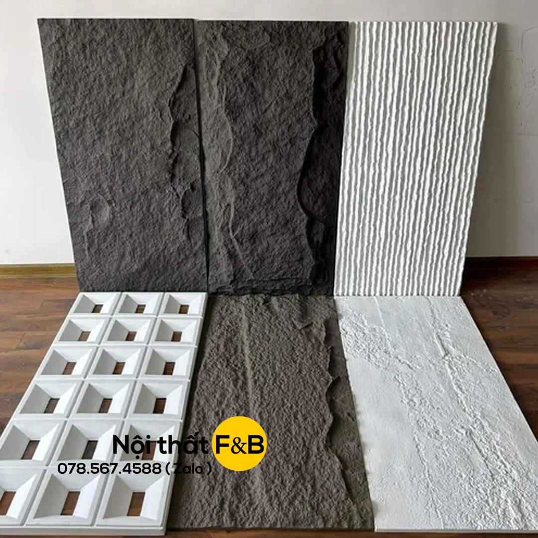 Kích thước các tấm PU giả đá tại thị trường việt nam cũng khá đa dạng. Một trong những kích thước phổ biến nhất là khổ 60cm x 60cm, khổ 60cm x 120cm, khổ 60cm x 240cm.